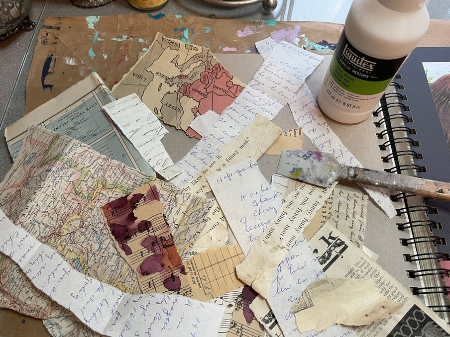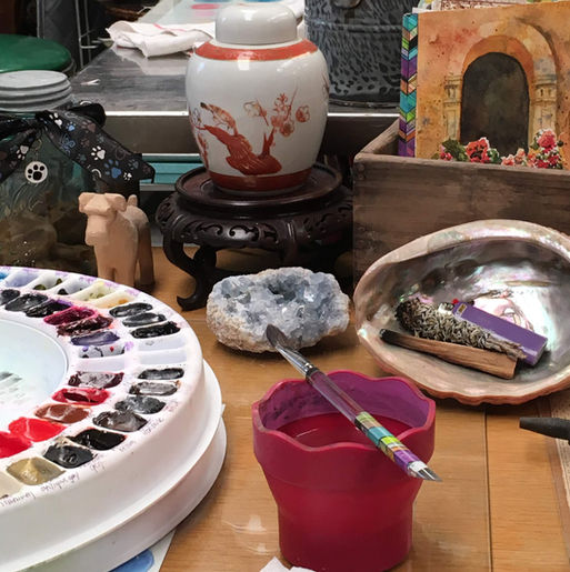 This is a great place to see what I've been working on in the studio. It's never boring and I may switch directions and work between many projects at once. I add a layer of paint over here and set the project aside to dry. Then I may hand stitch for a while. If I find myself not being able to decide what to do, it helps me to go thru my stash and supplies. That will always get the creative thoughts going. I hope you enjoy taking a peek into my creative world.